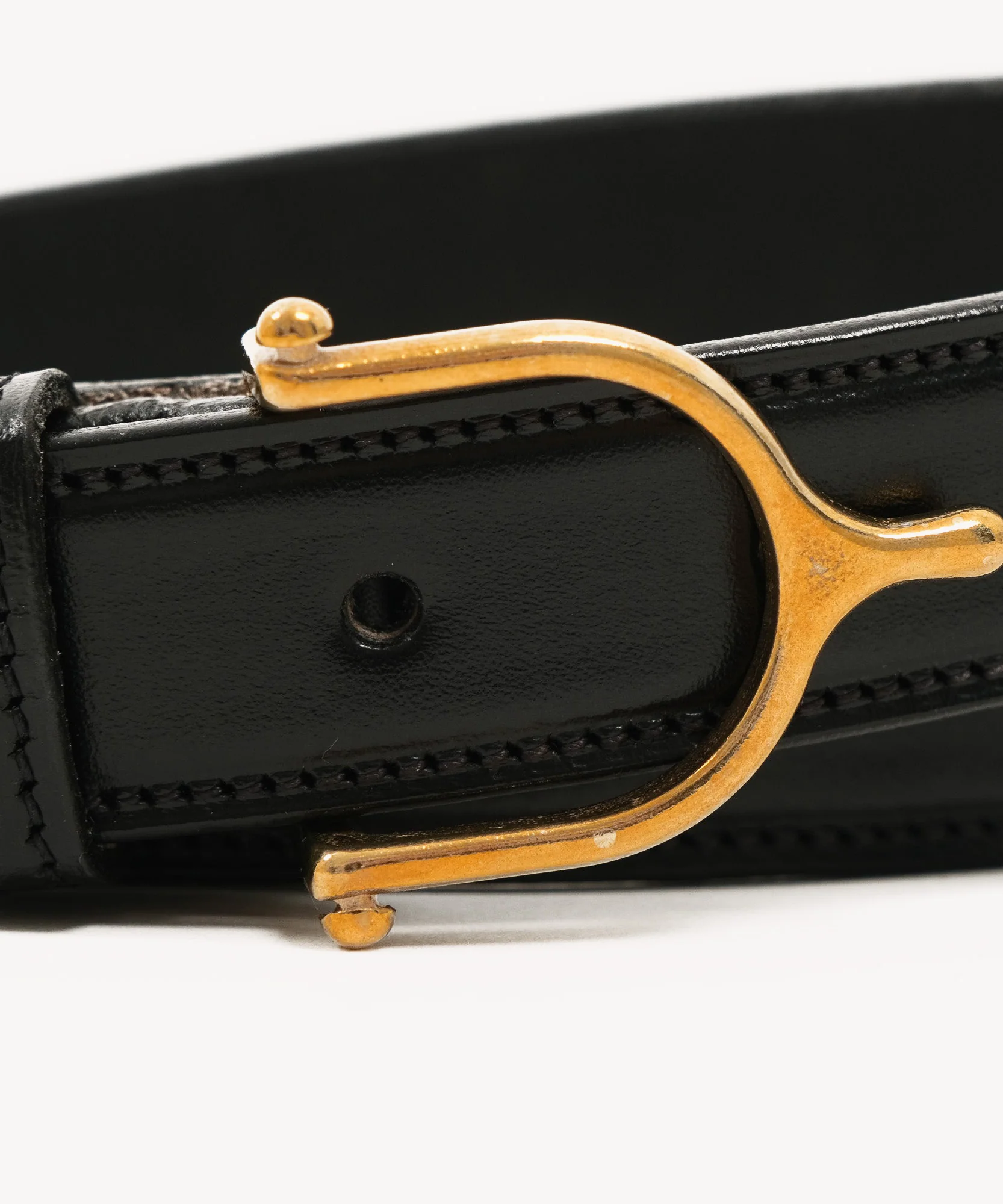 It features stitched edges, a sewn buckle closure and a brass english spur buckle.