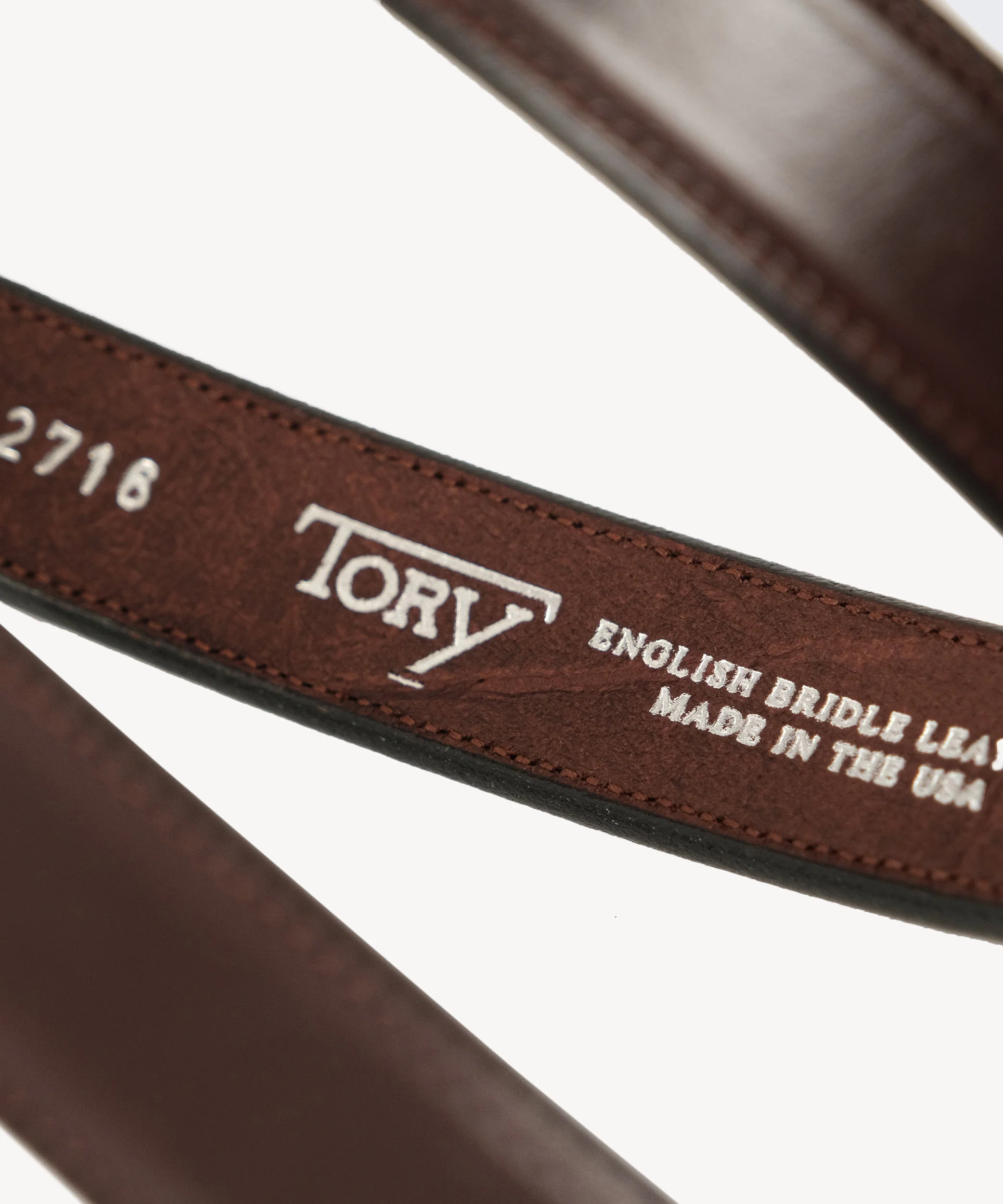 The belt is manufactured for BRUT by Tory Leather, an American company based in Curwensville, PA. Each belt is made from English bridle leather sourced from Wickett & Craig, awarded the 2015 Tannery of the Year.