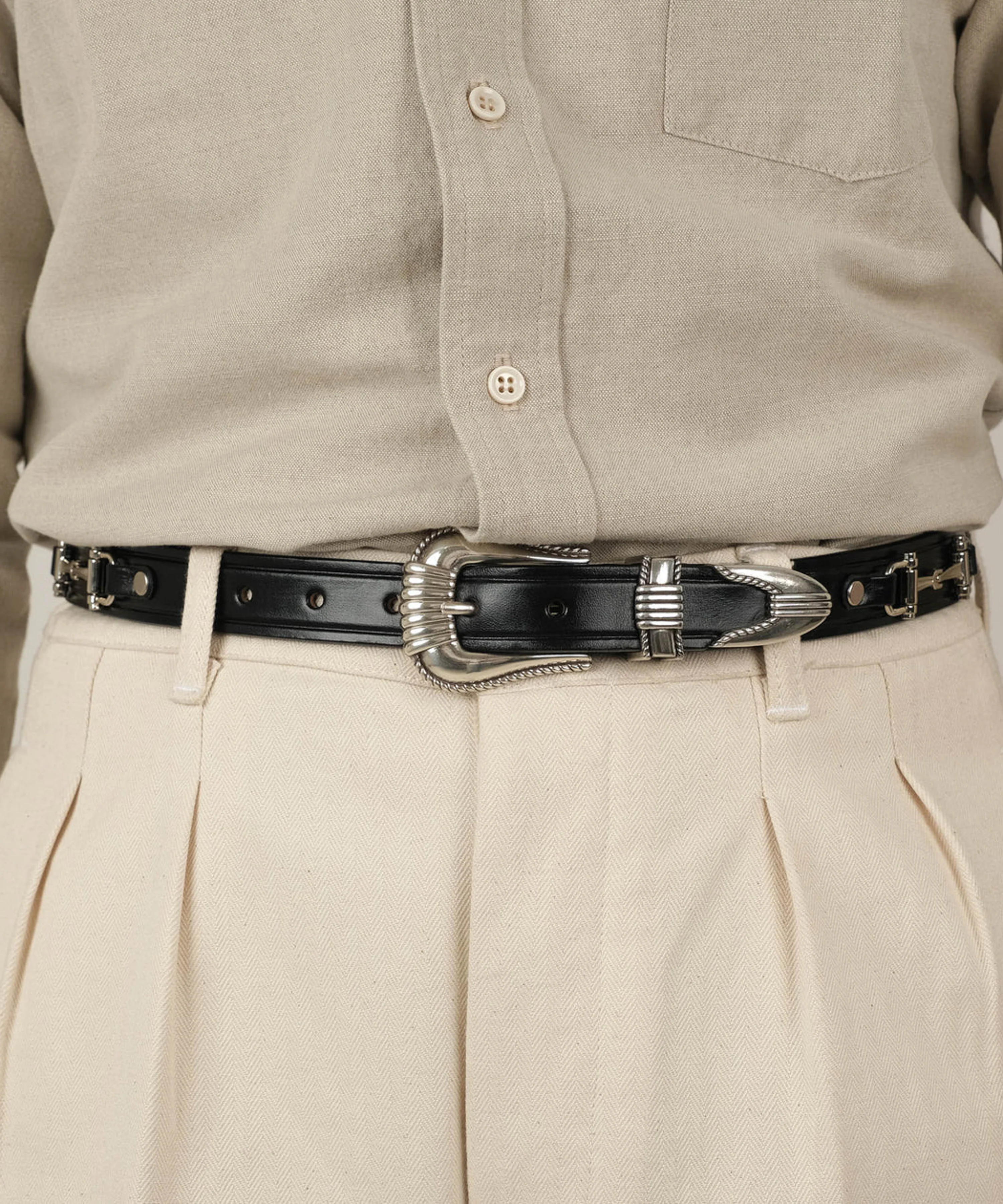 Our modern cowboy belt features a blend of traditional elements. Made from english bridle leather, intricate tooling, and cowboy-style buckles with contemporary materials, finishes, and design elements. Such a belt could appeal to individuals who appreciate the rugged and timeless appeal of cowboy fashion but also seek a more updated and versatile accessory.