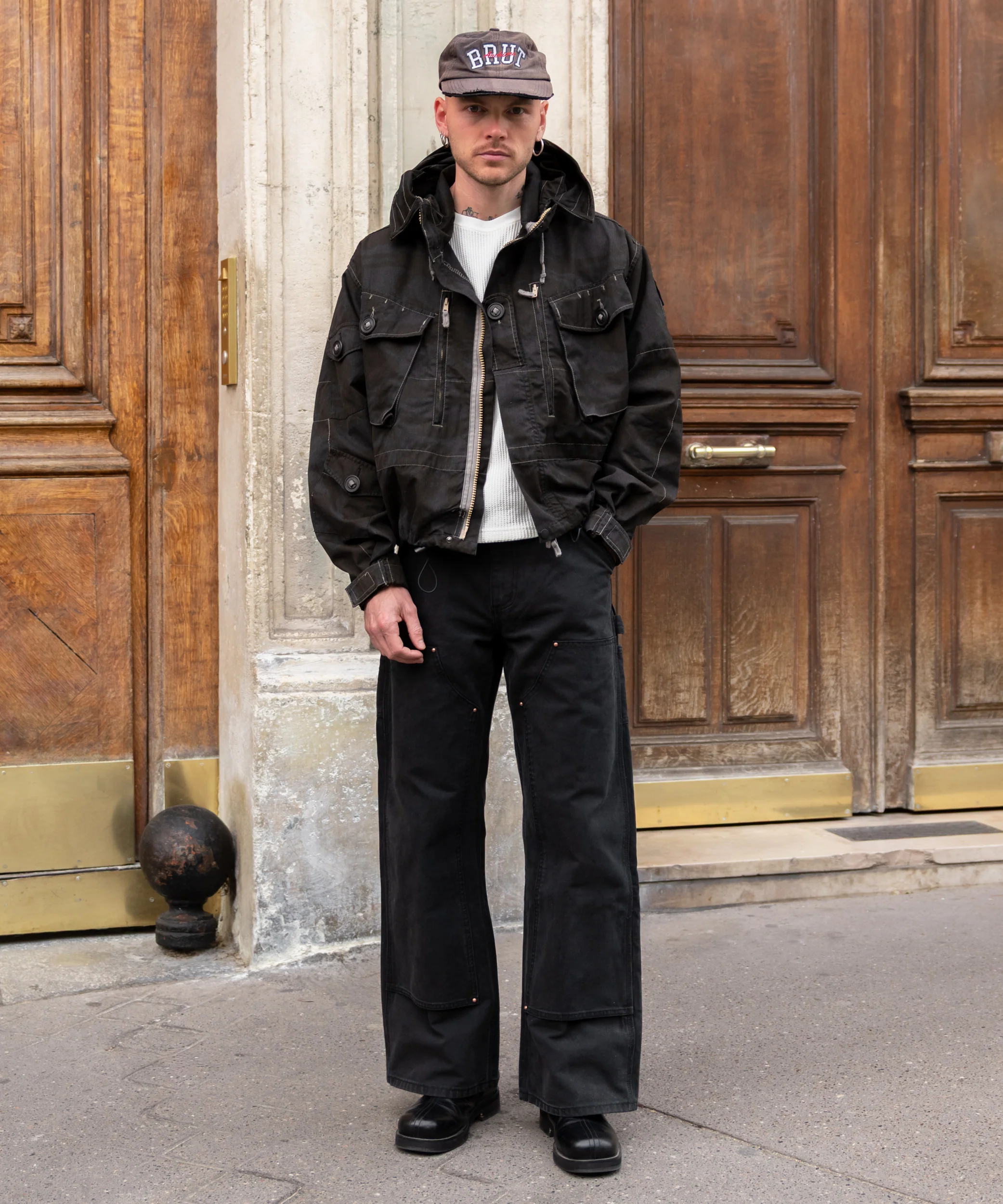 2 front patch pockets, 2 front zipped pockets, 3 arm pockets and 2 back patch pockets.