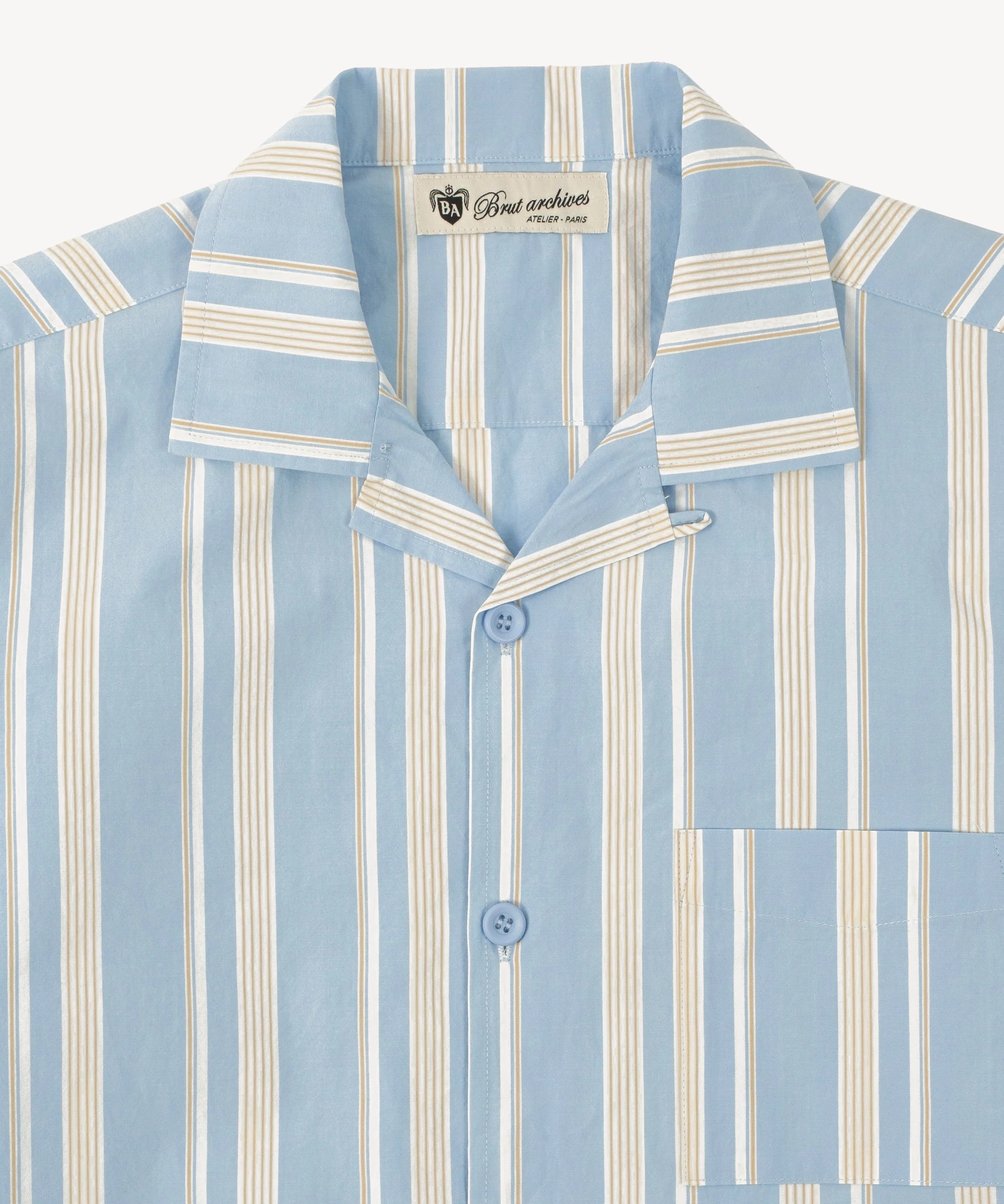 The RETIREE SHIRT draws inspiration from the classic open collar leisure shirts of the '70s. Crafted from high-quality cotton fabric.