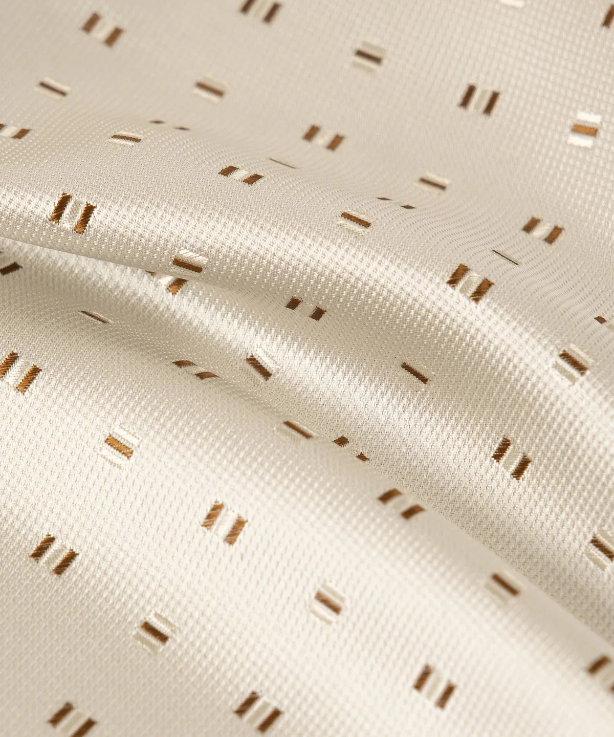 The TIE SHIRT is a mix of two rare shirts we have in our archive from the 1940's and 50's. The design consists of a short sleeves cropped shirt with a loop collar details. It is crafted from different deadstock fabrics which were intended for necktie manufacturing.